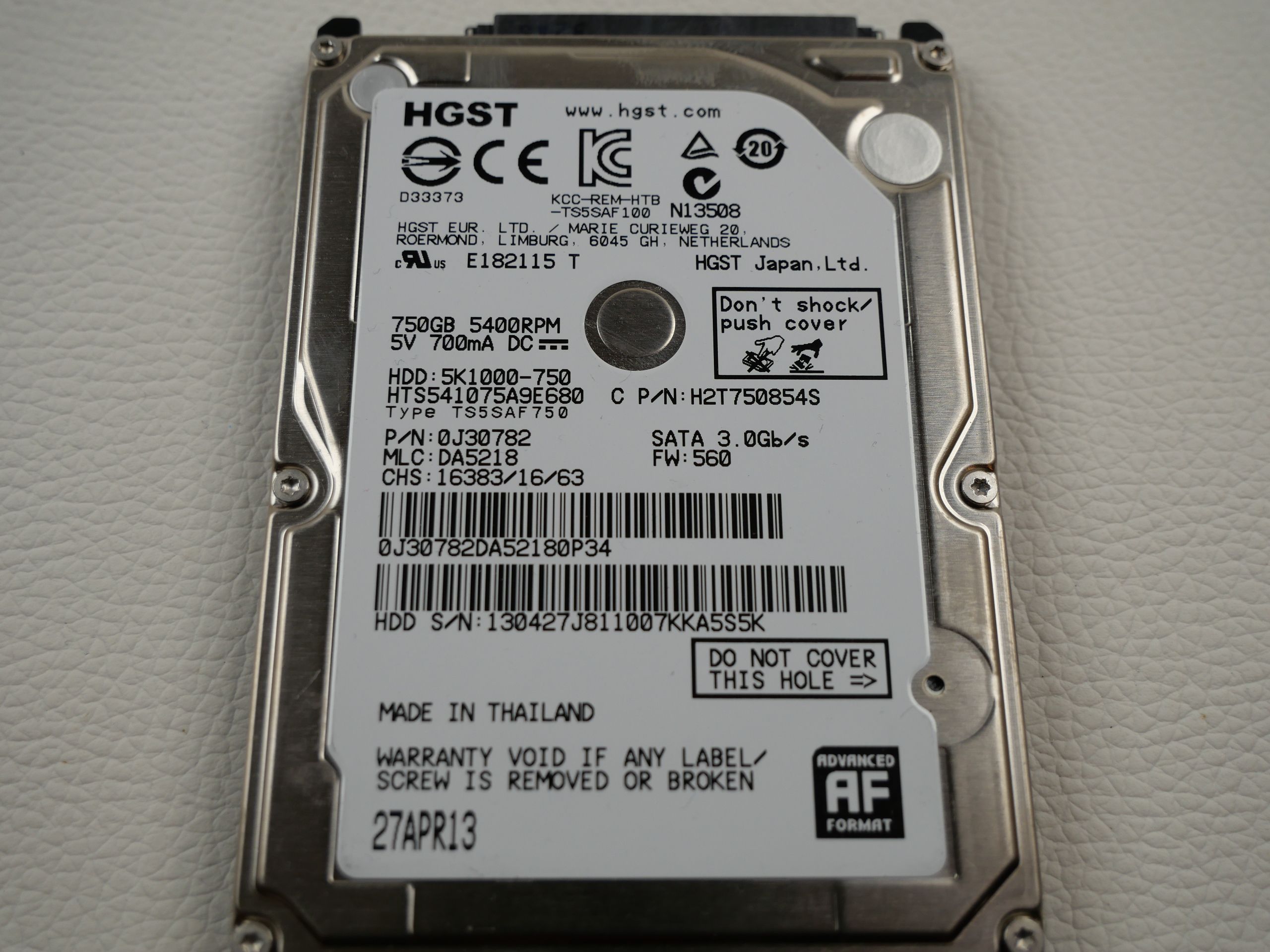 HGST HTS541075A9E680 750 GB HDD Festplatte Hard Disk Drive aus ASUS G750JZ