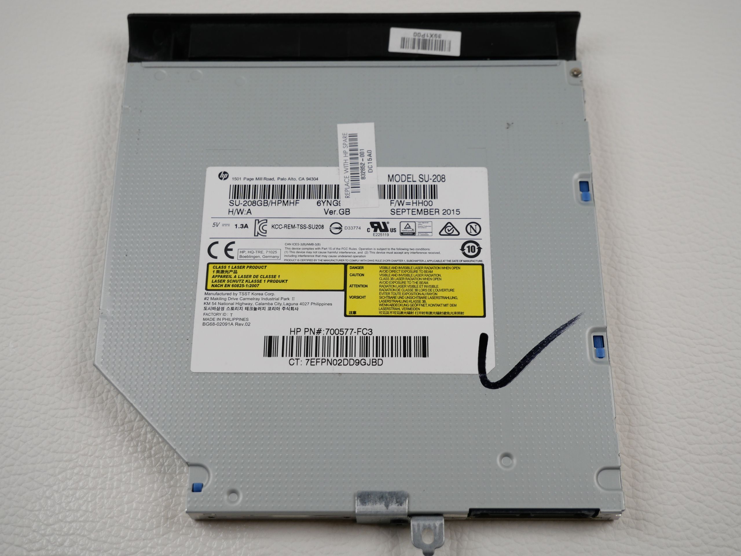 HP Pavilion Gaming 15-ak033ng TSST SU-208 CD/DVD Laufwerk Drive 832852-001