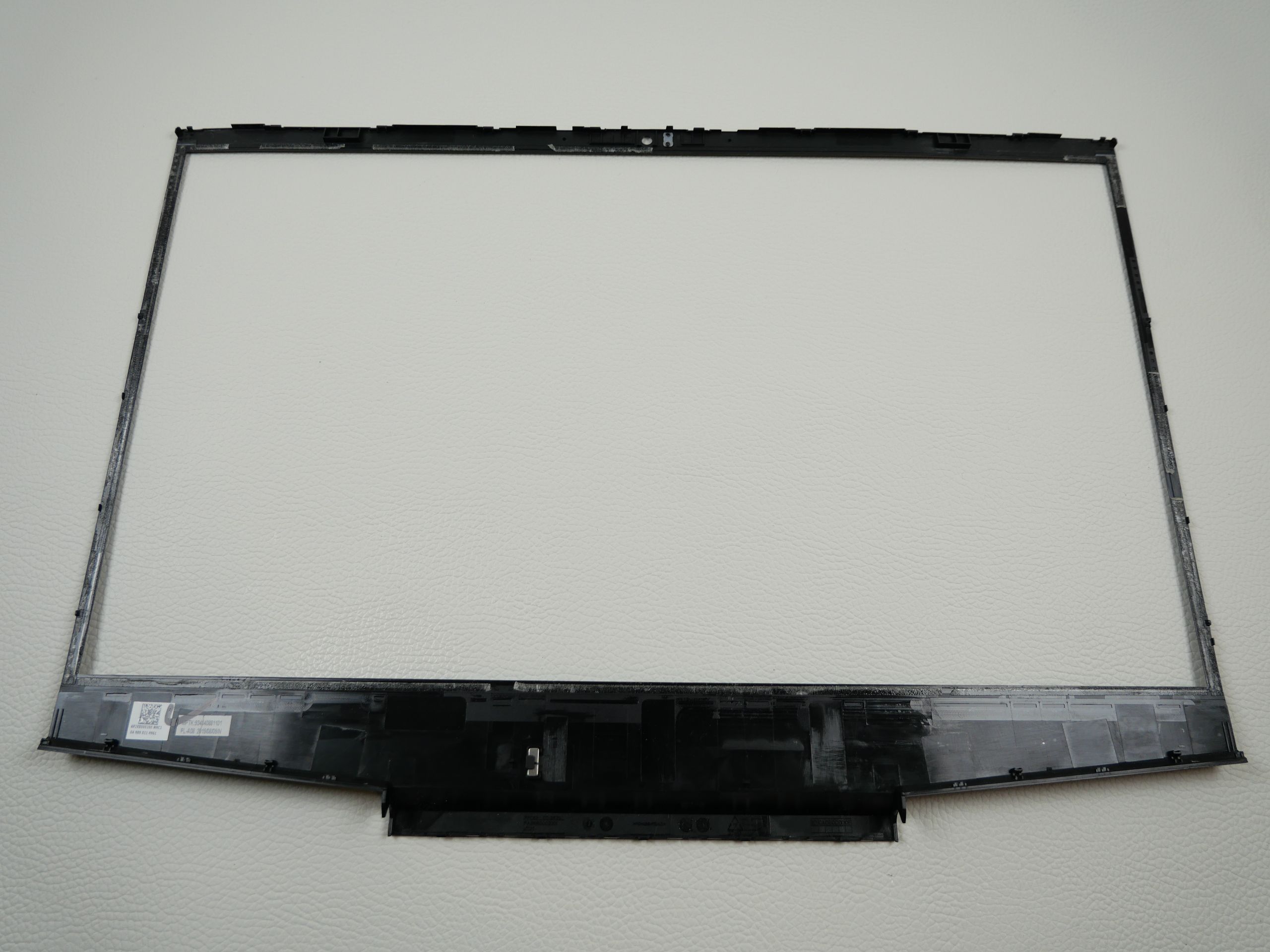 Bei diesem Laptop hat man den Displayrahmen großflächig mit einem starken doppelseitigen Klebestreifen verklebt. Die zerstörungsfreie Demontage und anschließende saubere erneute Verklebung sind sehr aufwendig.
