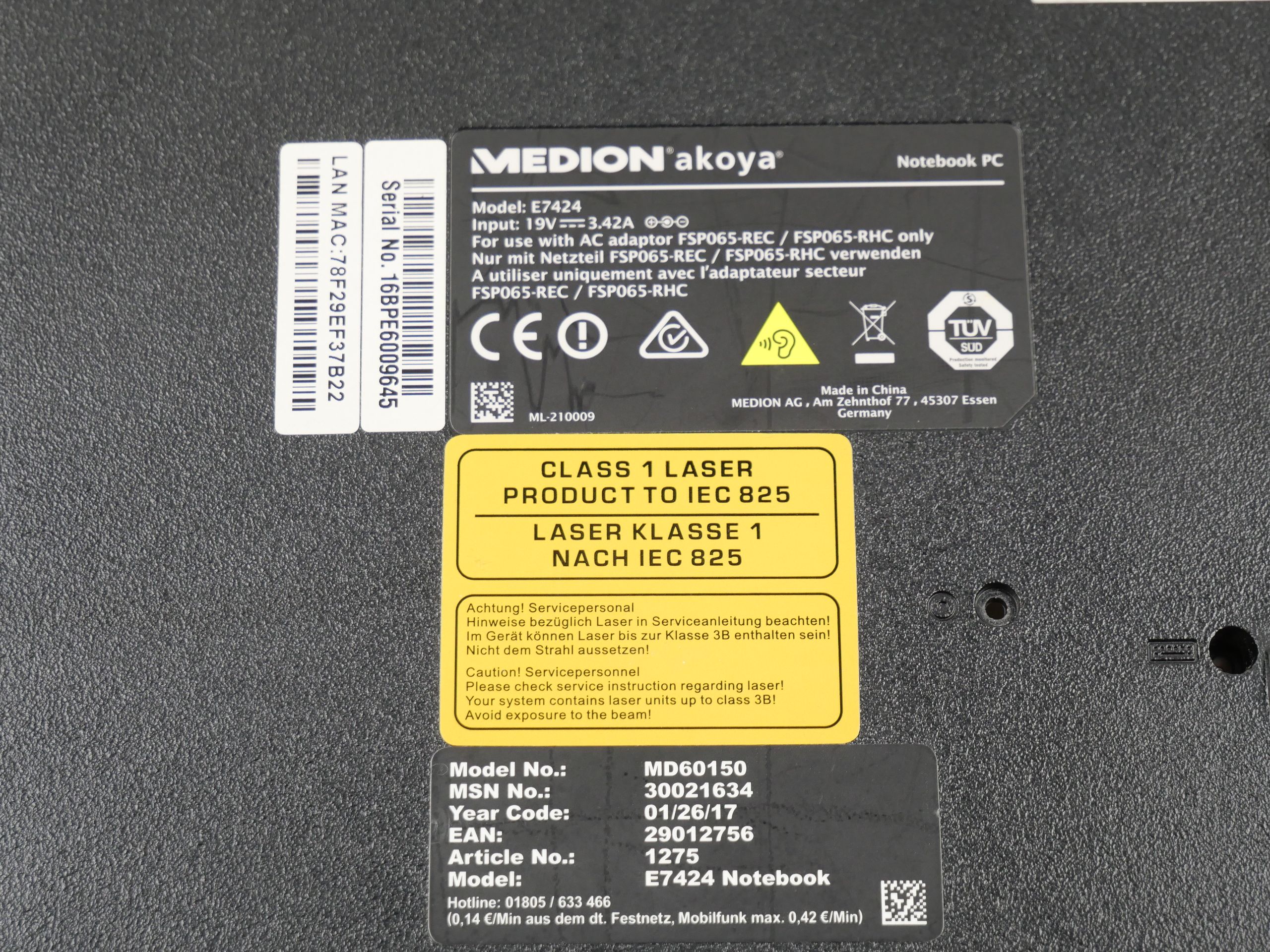 Medion Akoya E7424 Gehäuseboden Unterteil Bottom Case 13N0-1HA1411