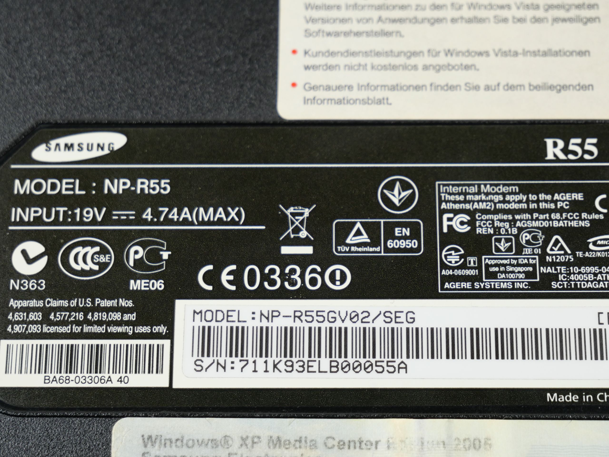 - Laptop MPN: NP-R55GV02/SEG